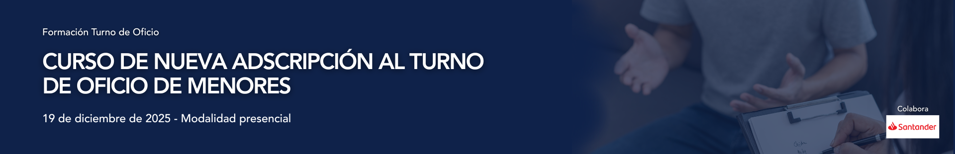 El próximo 19 de diciembre se celebra en el salón de actos de la sede colegial el CURSO DE NUEVA ADSRIPCIÓN TURNO DE MENORES para el próximo año 2026.