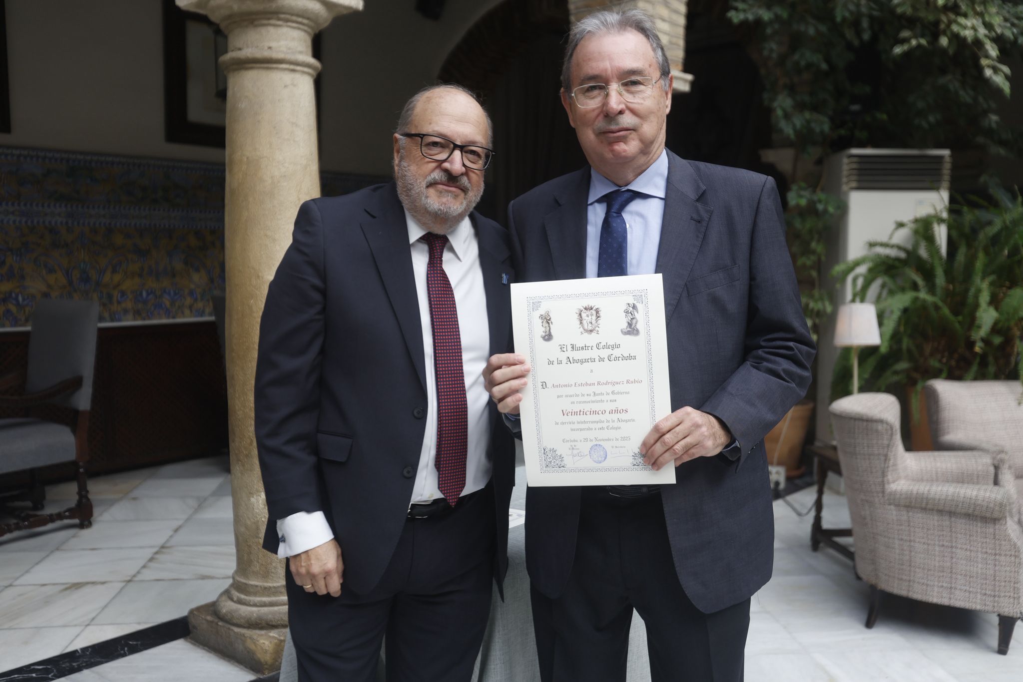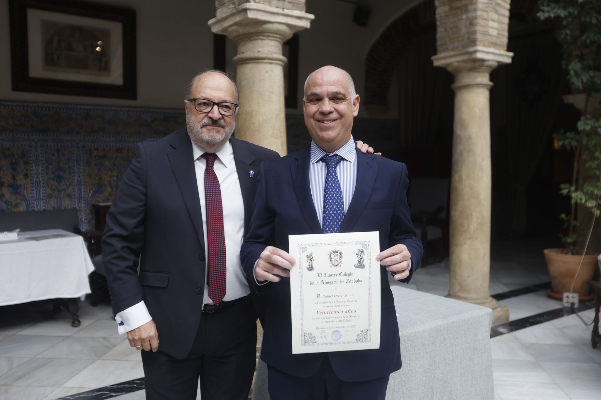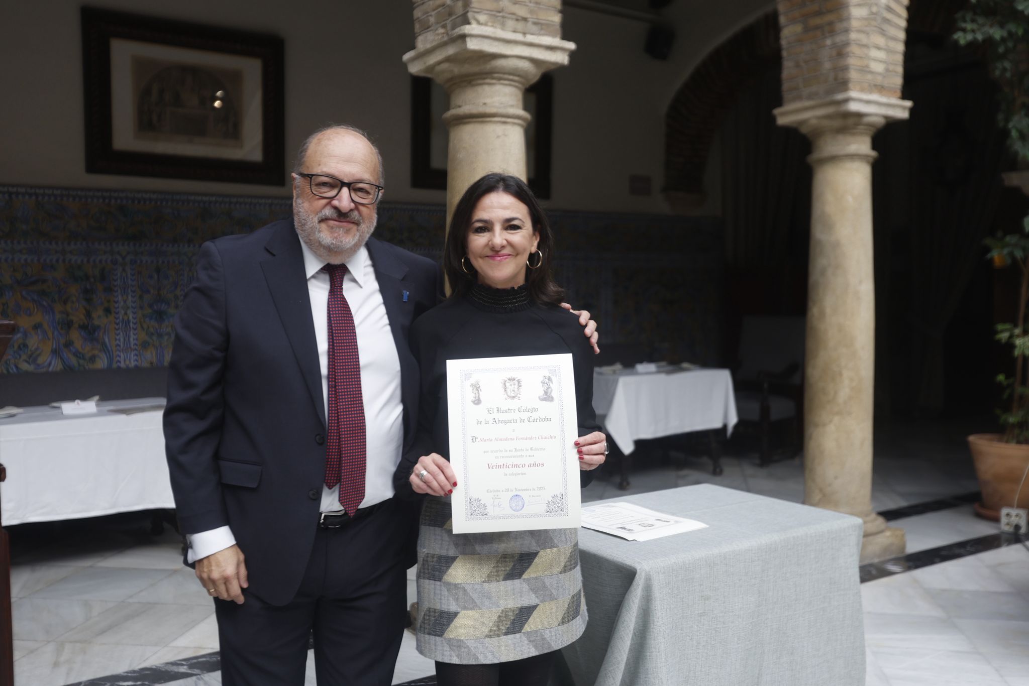 El Colegio de la Abogacía de Córdoba ha celebrado hoy, en el Patio del Real Círculo de la Amistad, el tradicional acto de entrega de diplomas a los colegiados que cumplen 25 y 50 años de ejercicio profesional o colegiación ininterrumpida, en el marco de los actos organizados en honor a los Patronos del Colegio, San Rafael Arcángel y la Inmaculada Concepción.